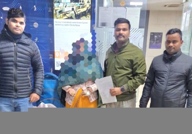 आज दिनांक 29 दिसम्बर, 2025 को जनपद वाराणसी की रहने वाली एक महिला जो की भोजूबीर सब्जी मण्डी से ऑटो में बैठी और बस स्टैण्ड पर उतरते वक्त अपना बैग ऑटो में भूल गयी, जिसमें झुमका एक सेट, दो पीस ऑगुठी, दो पीस सोने की चैन, चार सेट चॉदी का पायल आदि समान थे, जिसकी कीमत लगभग तीन लाख रूपये थी।