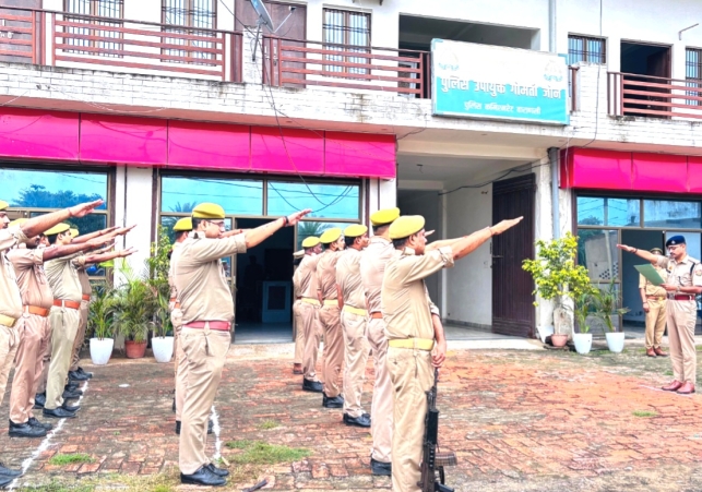 राष्ट्रीय एकता दिवस के अवसर पर पुलिस उपायुक्त गोमती ज़ोन आकाश पटेल द्वारा गोमती ज़ोन पुलिस कार्यालय बाबातपुर में नियुक्त पुलिसकर्मियों को राष्ट्र की एकता अखण्डता एवं सुरक्षा बनाए रखने की शपथ दिलाई गई