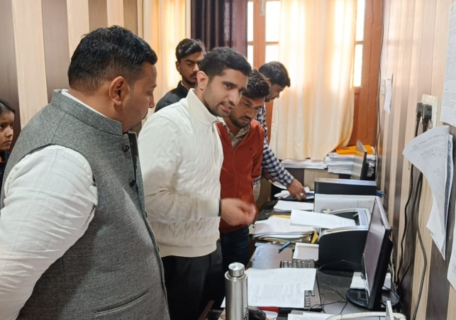 वाराणसी : नगर आयुक्त हिमांशु नागपाल ने शनिवार को भेलूपुर स्थित जलकल कार्यालय का औचक निरीक्षण कर व्यवस्थाओं का जायजा लिया।