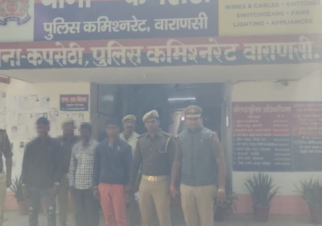 दिनांक 15.11.2025 को थाना कपसेठी पुलिस द्वारा मुखबिर की सूचना पर कपसेठी स्टेशन के पास से मारपीट के सम्बन्ध में पंजीकृत मु0अ0सं0 174/25, धारा 190/191(2)/109/115(2)/351(3) बीएनएस में वांछित अभियुक्त राजकुमार चौहान पुत्र स्व0 बल्ली, उम्र लगभग 44 वर्ष, प्रदुम चौहान पुत्र राजकुमार, उम्र लगभग 20 वर्ष, शिवम चौहान पुत्र राजकुमार, उम्र लगभग 19 वर्ष, निवासीगण ग्राम बेलवा, थाना कपसेठी, जनपद वाराणसी को गिरफ्तार कर आवश्यक विधिक कार्रवाई की जा रही है।