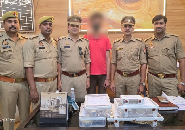 पुलिस आयुक्त वाराणसी के अपराधों की रोकथाम, चोरी/लूट की घटनाओ के सफल अनावरण एवं वांछित/फरार अभियुक्तों की गिरफ्तारी हेतु चलाये जा रहे अभियान के क्रम में, पुलिस उपायुक्त काशी ज़ोन के निर्देशन में, अपर पुलिस उपायुक्त काशी जोन के पर्यवेक्षण में एवं सहायक पुलिस आयुक्त दशाश्वमेध व प्रभारी निरीक्षक चौक के नेतृत्व में थाना चौक पुलिस टीम द्वारा मुखबिर सूचना के आधार पर मु0अ0सं0-52/2026, धारा 306 बीएनएस थाना चौक कमिश्नरेट वाराणसी से सम्बन्धित एक नफर अभियुक्त रजत मिश्रा पुत्र कौशल मिश्रा निवासी के 34/12 चौखंभा थाना कोतवाली वाराणसी उम्र 27 वर्ष को निशानदेही पर अभियुक्त के बाथरुम के बगल मे एक पुराने कुएं के ऊपर खिडकी पर रखा हुआ एक सफेद रंग के प्लास्टिक के बोरे मे सफेद धातु के छोटी ग्लास 27 पीस, मीडियम ग्लास 16 पीस, बड़ा ग्लास 11 पीस, छोटी कटोरी 10 पीस, मीडियम कटोरी 05 पीस, बड़ी कटोरी 15 पीस, छोटा प्लेट 02 पीस, मीडियम प्लेट 05 पीस, बड़ा प्लेट 08 पीस, चम्मच 64 पीस व नगद कुल 30000 रुपये लिफाफा मे रखा हुआ बरामद किया। बरामद माल का वजन करने के लिये साथ मे लाये इलेक्ट्रॉनिक तराजू से तौला गया तो छोटी बड़ी कुल 54 पीस ग्लास का वजन 1990 ग्राम, छोटी बड़ी कुल 30पीस कटोरी का वजन 1465 ग्राम व छोटा बड़ा कुल 15 पीस प्लेट का वजन 1700 ग्राम व चम्मच 64 पीस कुल वजन 639 ग्राम आया। समस्त बरामद माल के वजन को जोडने पर कुल वजन 5 किलो 794 ग्राम के साथ दिनांक 15.03.2026 को समय 20.45 बजे गिरफ्तार किया गया। आवश्यक वैधानिक कार्यवाही की जा रही है।