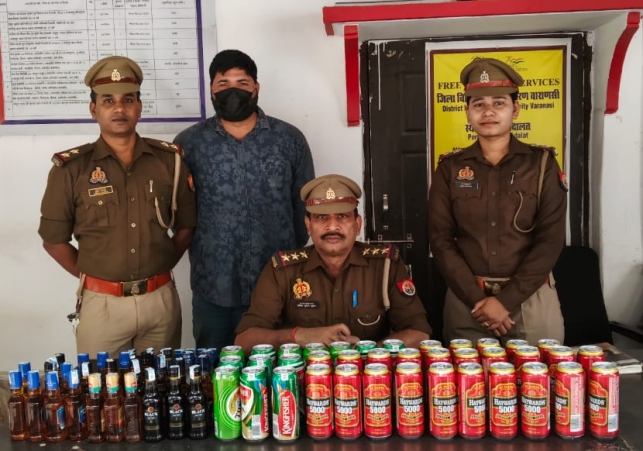 वाराणसी थाना सिगरा पुलिस द्वारा 37 अंग्रेजी शराब कुल मात्रा 6.660 लीटर व 38 केन बियर कुल मात्रा 19 लीटर कुल 25.66 लीटर मय जामा तलाशी 2,540/- रू0 के साथ 1 अभियुक्त गिरफ्तार